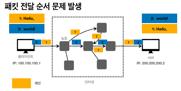 패킷은 서버를 타면서 이동하기 때문에 보내는 패킷이 항상 같은 경로로 이동한다는 보장이 없다.