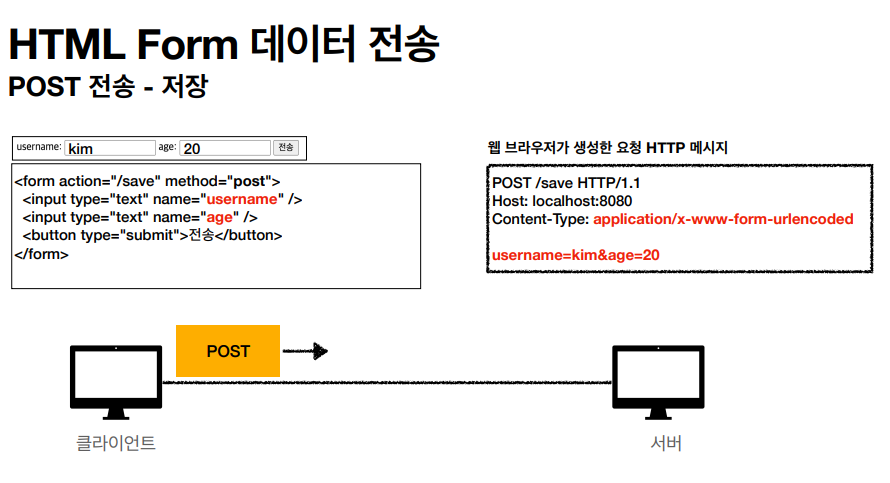 form의 내용을 메시지 바디를 통해서 전송(key=value, 쿼리 파라미터 형식)