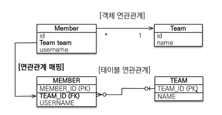 따라서 테이블의 외래키 대신 참조 값을 넣고 어노테이션을 이용하여 테이블의 연관관계를 정의하는 것이다.