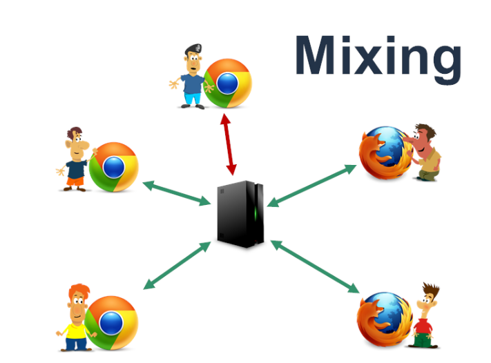클라이언트는 수많은 참여자들 사이에서도 하나의 스트림만 받는다. (모든 입력을 받아 하나로 합치는 방식)