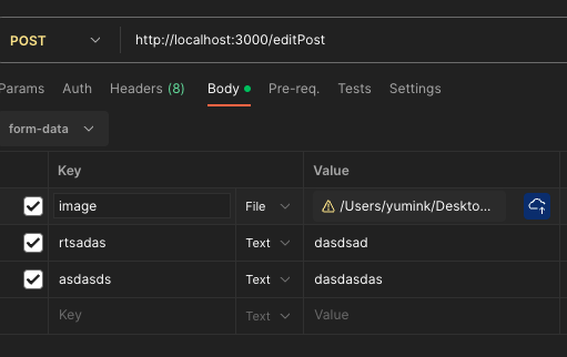 let res = await axios.post(`/editPost`, formData, {