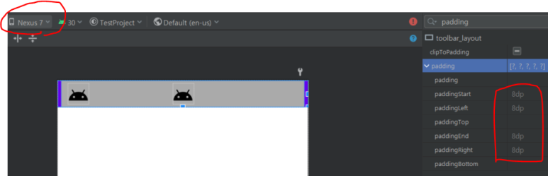 안드로이드 내부에서는 기기의 크기에 따라서 Toolbar에 자동으로 padding값을 주는 것으로 보인다.
