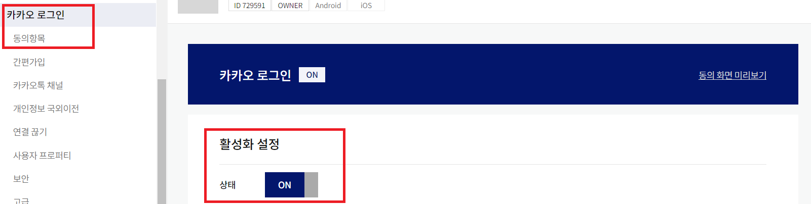 카카오 로그인 활성화