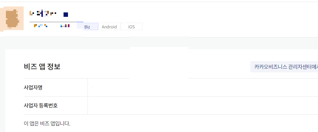 미리 카카오비즈 계정을 받은 상태였고 사업자 등록 번호를 입력하니 바로 연결이 되네요.