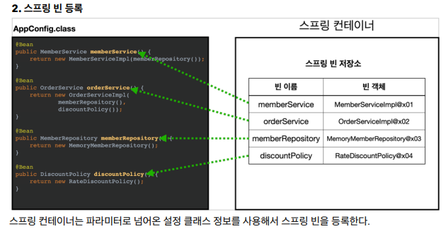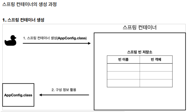 스프링 컨테이너에 스프링 빈 저장소가 있어서 빈 이름과 객체가 저장된다.